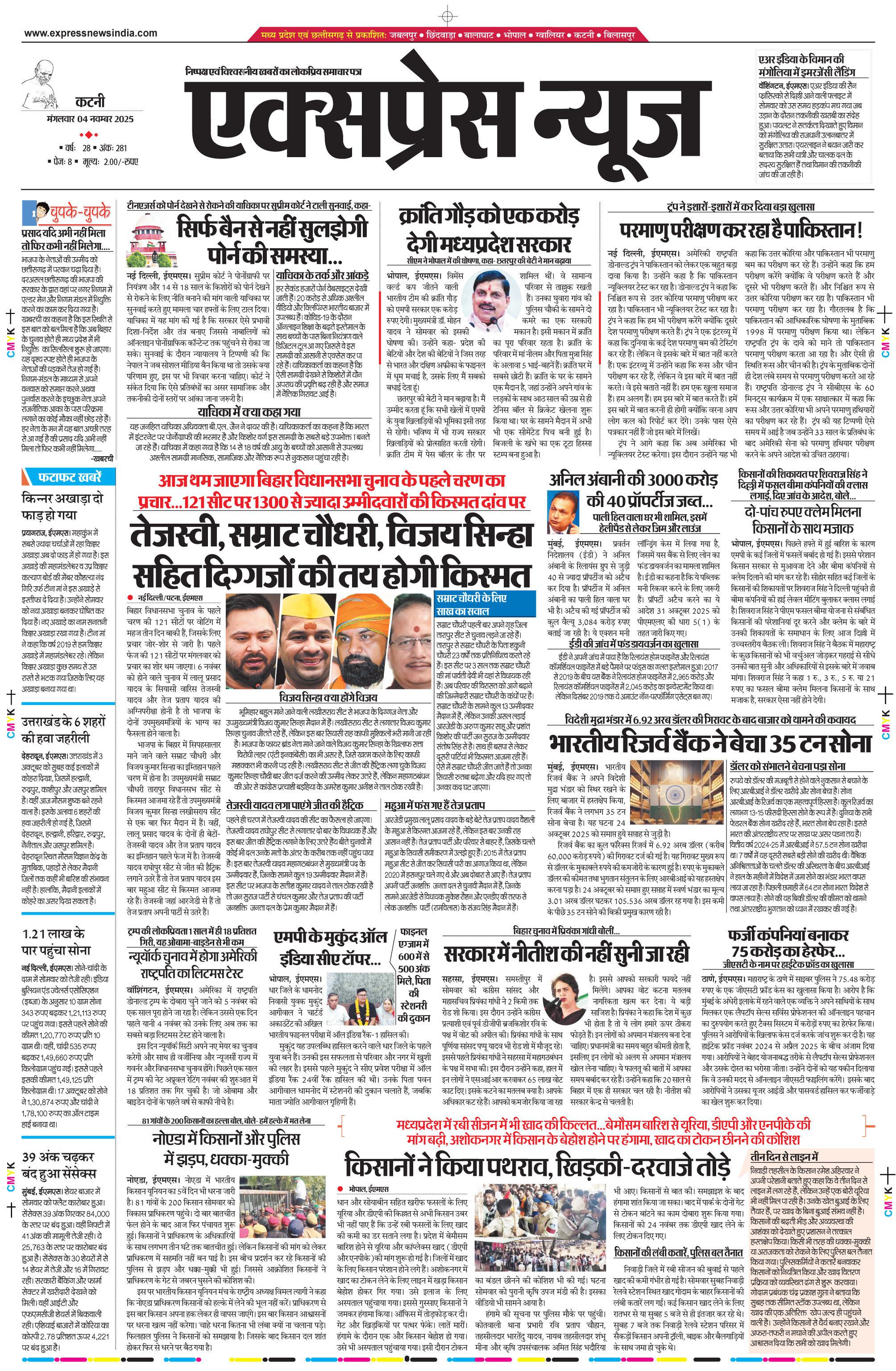 Jabalpur Express epaper is a Hindi language newspaper published form Chhindwara, Jabalpur, India. It was started in year 1991 and owned by Express Group. The Express News published from bhopal, gwalior, katni, jabalpur, chhindwara and bilaspur.