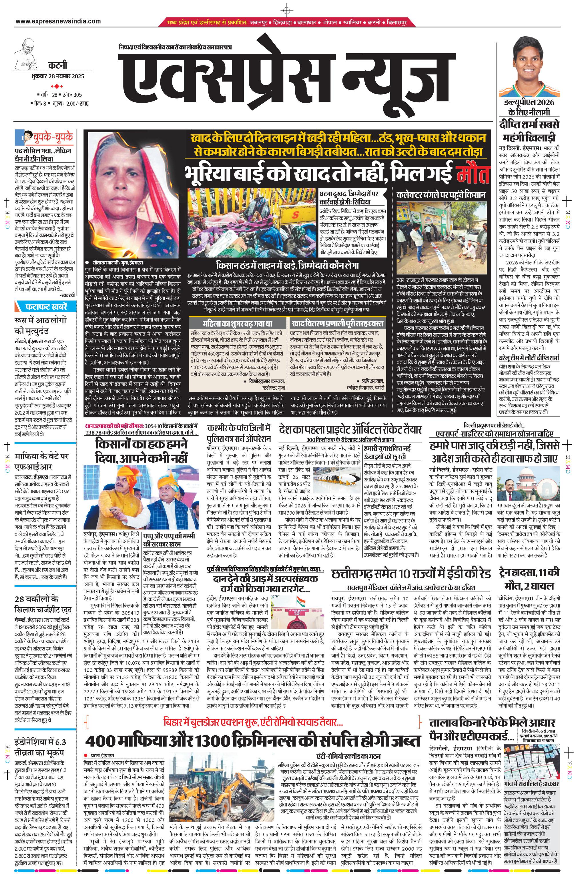 Jabalpur Express epaper is a Hindi language newspaper published form Chhindwara, Jabalpur, India. It was started in year 1991 and owned by Express Group. The Express News published from bhopal, gwalior, katni, jabalpur, chhindwara and bilaspur.